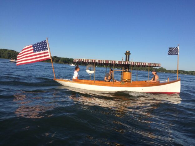 The 1887 Lawley Steam Launch (pictured above) is owned by Nora and Louis Cares, members of the Toronto chapter. Her name is Ava-Lu. She is powered by steam/coal engine that produces 10hp. Her home port is Grand Rapids, MI. This completely original 1969 17-foot Bayliner is powered by 120 MercCruiser and owned by Charlie…