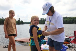 All children and adults (when they accompany children) are fitted with appropriate PFDs as parents watch, learn and often participate. (many of our passengers are first-timers in a boat!) A dock-hand chapter member is stationed on the dock to fit PFDs, help children board safely, and then release and receive the boat.