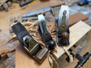 Smoothing planes, left to right: Infill plane, number 2 smooth plane, number 4 1/2 smooth plane.