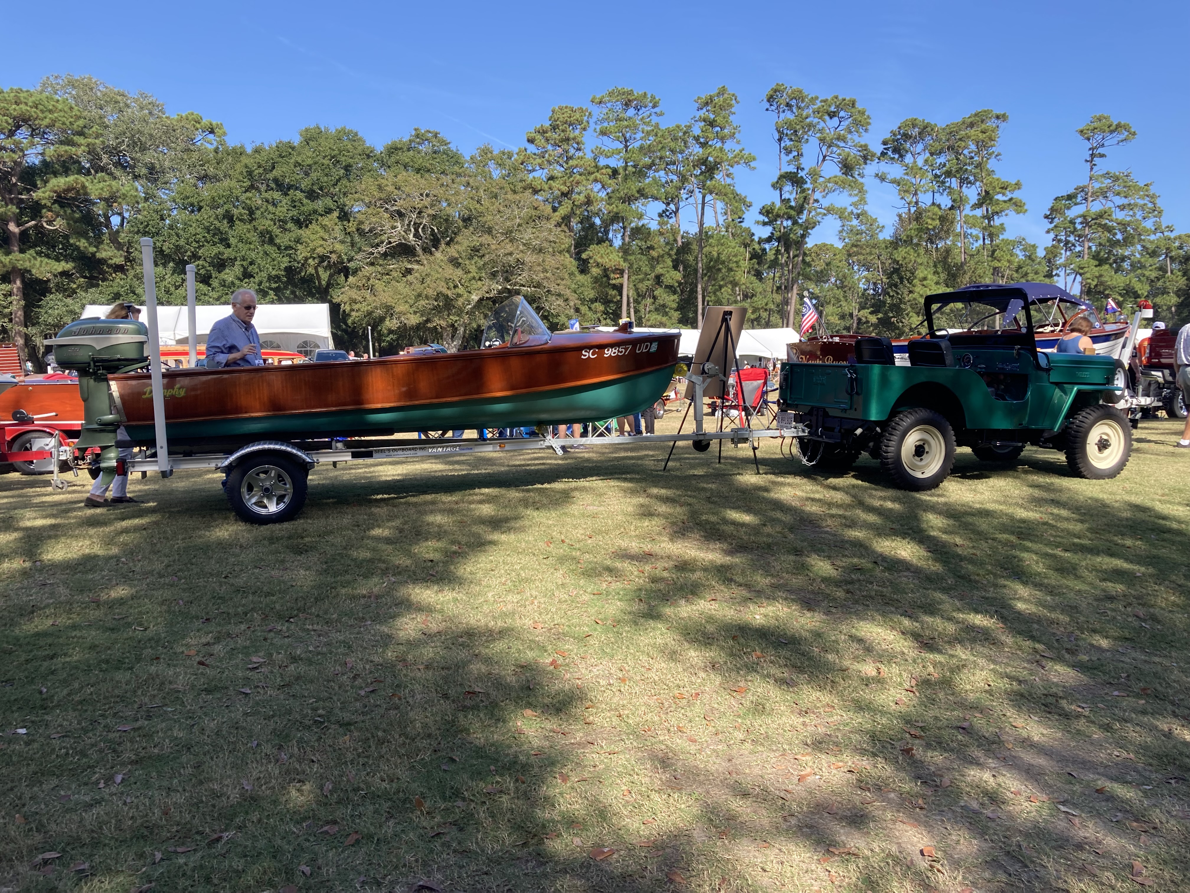 The Blue Ridge Chapter has been invited for the past eleven years to show their boats at this amazing motor sporting event… there are amazing cars, bikes, planes, and BOATS, all lining the course of the Port Royal Golf Club. Awesome! was the universal reaction from the ACBS board  of directors. They were extremely grateful to be invited down to spend time with the Chapter members and see their boats at this wonderful event.