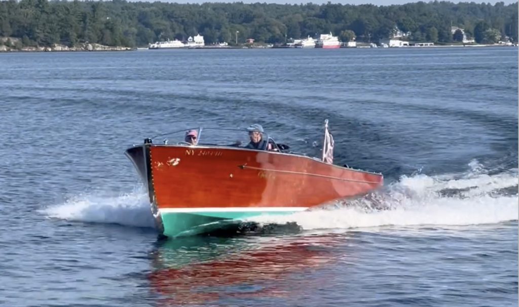 SATIN DOLL was commissioned in 1938 as a 24’ Chris-Craft Deluxe Utility. In 1983-84 the boat was modified by the Turcotte Brothers in the design of a 24' Sportsman with the double cockpit forward of the engine. A new cold molded triple layer bottom was installed in 2013 along with a new keel, chines, frames, stringers and refurbished chrome by Muller Boatworks. The 1995 Marine Power 350 V8 260HP engine is equipped with closed cooling. The hull sides were stripped and refinished and varnish redone in 2023-2024. A full width aft seat has also been added. With her high freeboard, SATIN DOLL performs well in choppy water. Sold complete with a tandem axle trailer, custom cover, burgee/stern poles, and many accessories.