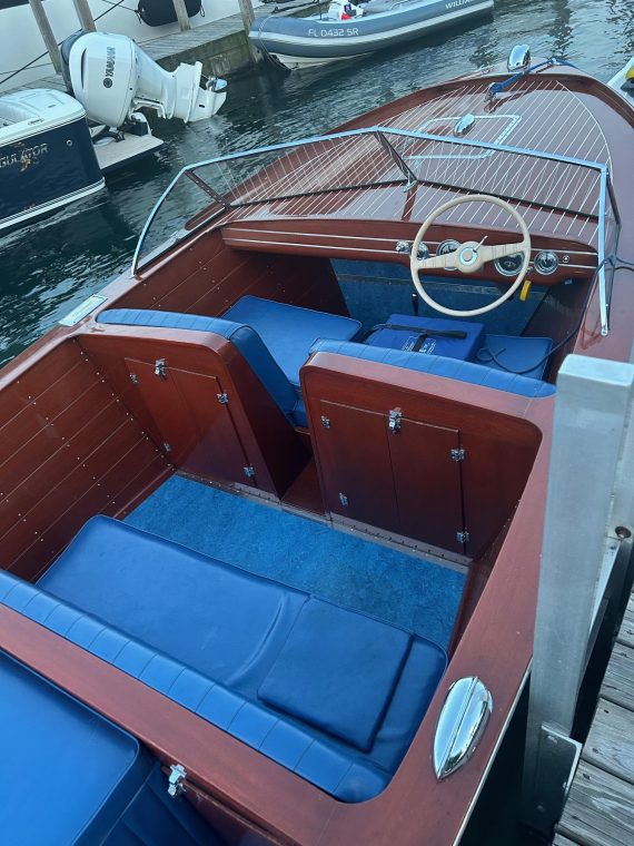 1948 22’ Chris-Craft Sportsman with no soak bottom, 283 c.i. V8 engine, custom middle seat, tandem axle trailer, water line mooring cover.