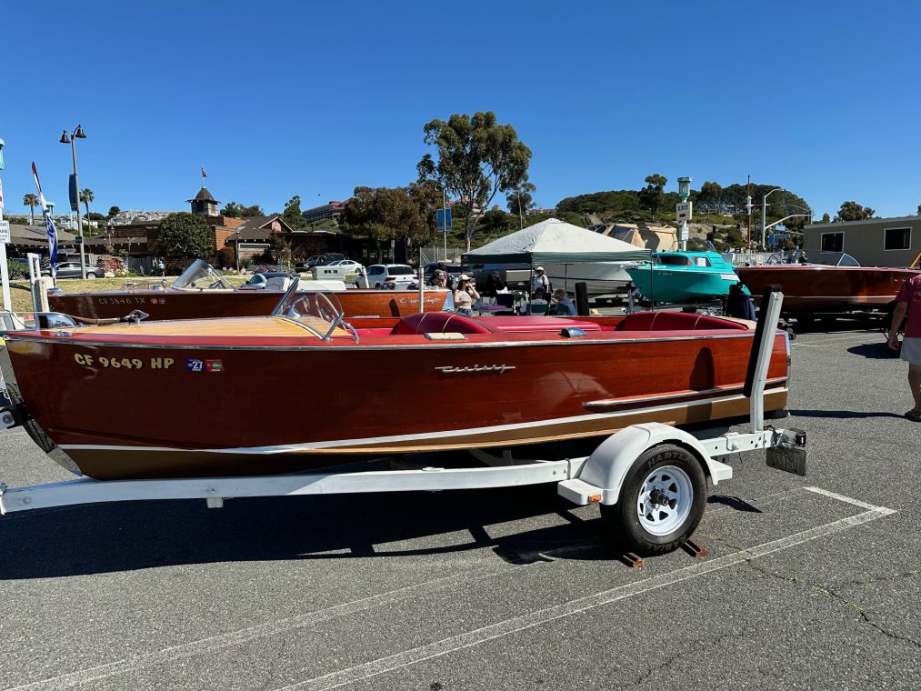 Original engine rebuilt at 538 hours. 6 volt system. Interior newer in original color. Custom cover older but fits nicely. 1988 Shore trailer with new master cylinder. Bumper, ropes and miscellaneous gear included. CF 9649 . Currently resides in Riverside California.