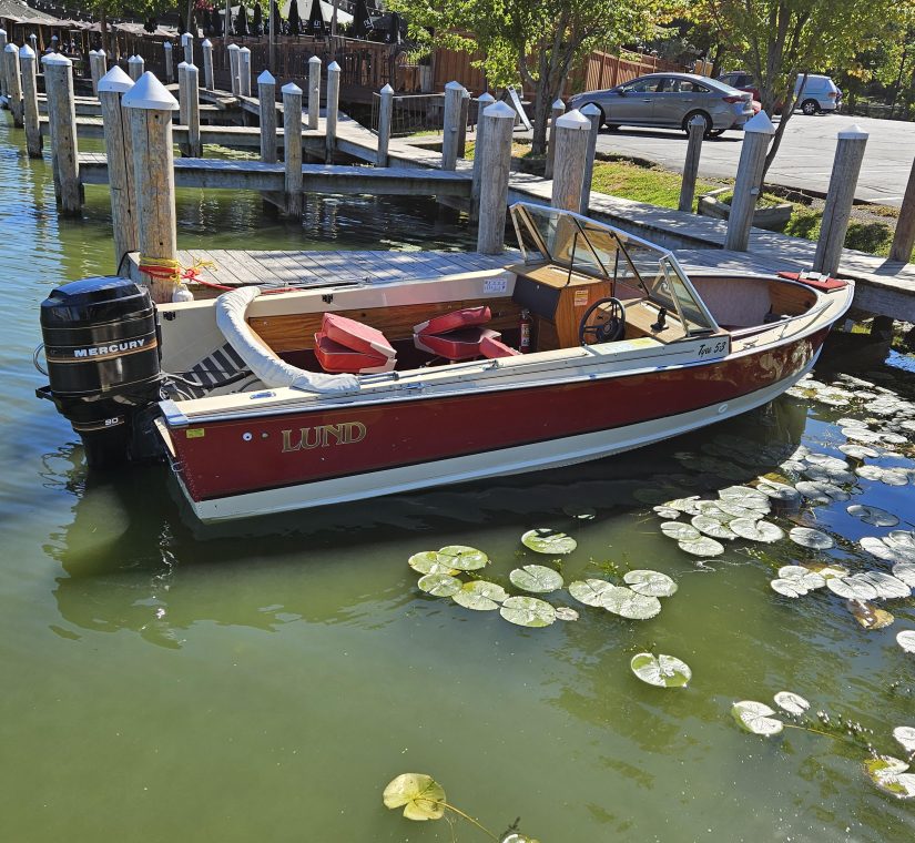 Classic ski & fish two owner boat. Aluminum hull with tons of wood trim inside. Continuously garaged. 90 horse. Power trim. Top with sides for weather. Trailer