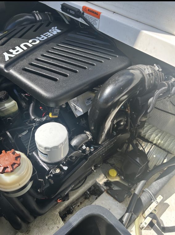 Special ordered highly optioned & always professionally serviced by Mercruiser Marine Mechanic. 496 MAG HO, 425 HP, fresh water cooled, Captains Call thru hull Corsa Exhaust. Bravo 3XDrive dual high performance props. Upgraded Clarion sound System with subwoofer & CD player.