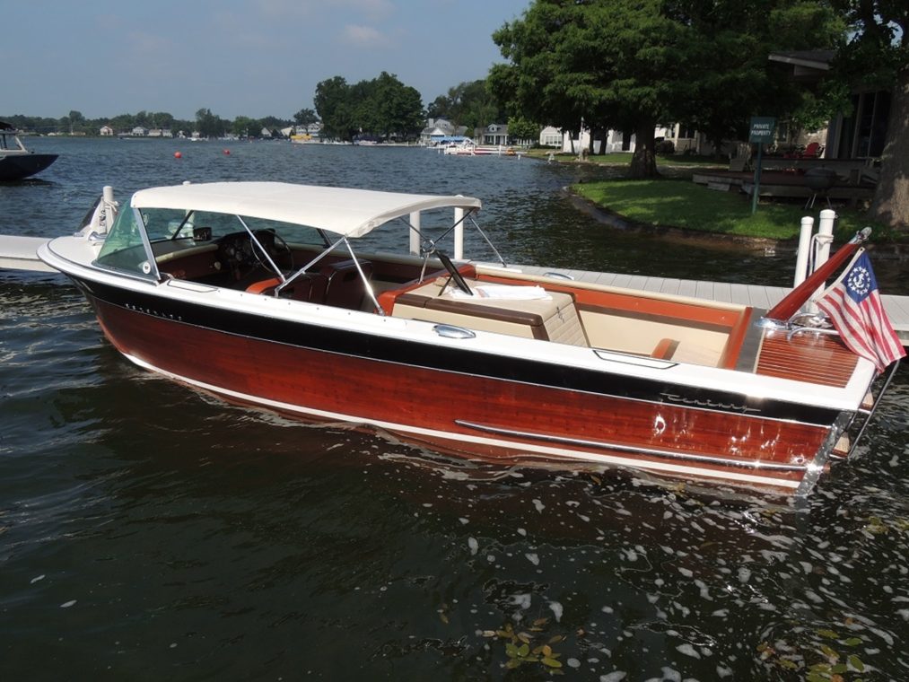 1964 Century Coronado, hull#M6468, Chrysler M413/280 power, 296 original hours, excellent preservation (plank on frame bottom), multiple awards. Factory convertible top, newer A&A replacement interior, new custom trailer, waterline cover. She has had excellent care and meticulous attention to detail in our care and effort to maintain her heritage. Runs well, rides well and shows well. Contact Chuck Rice, CLRice54@outlook.com or 317-446-6747 for additional information.