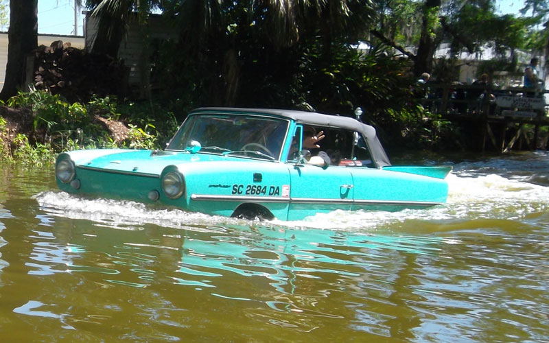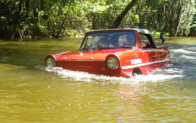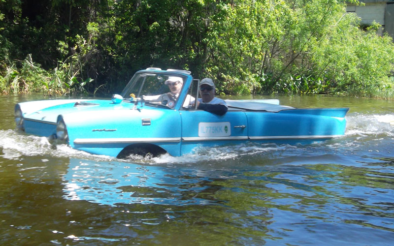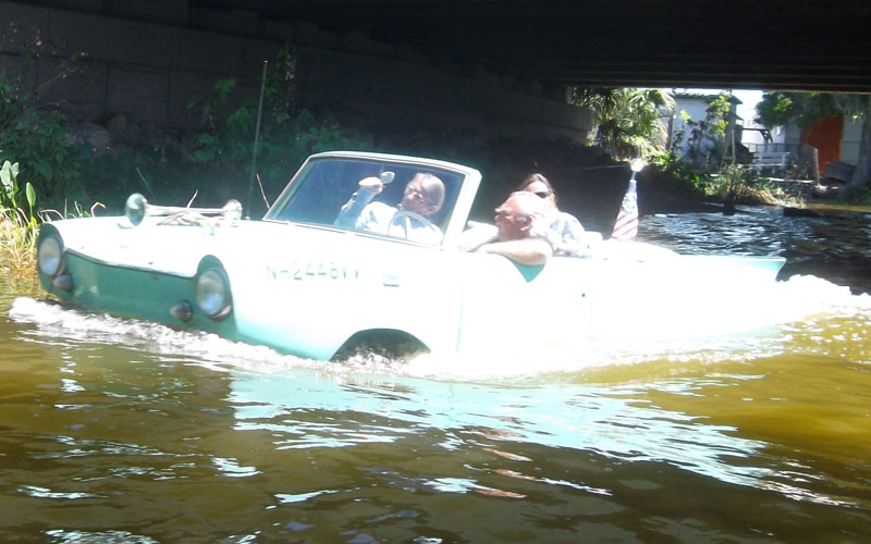 Returning through the Dora Canal, we were met with a parade of Amphicars – Wow!