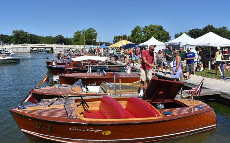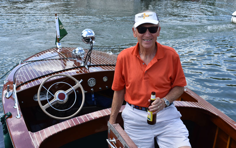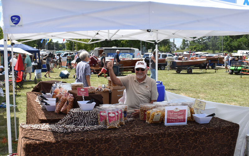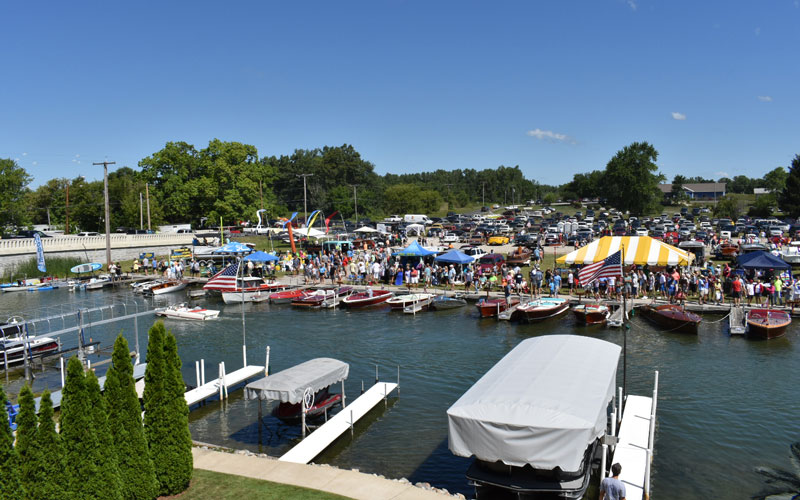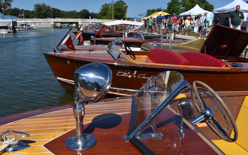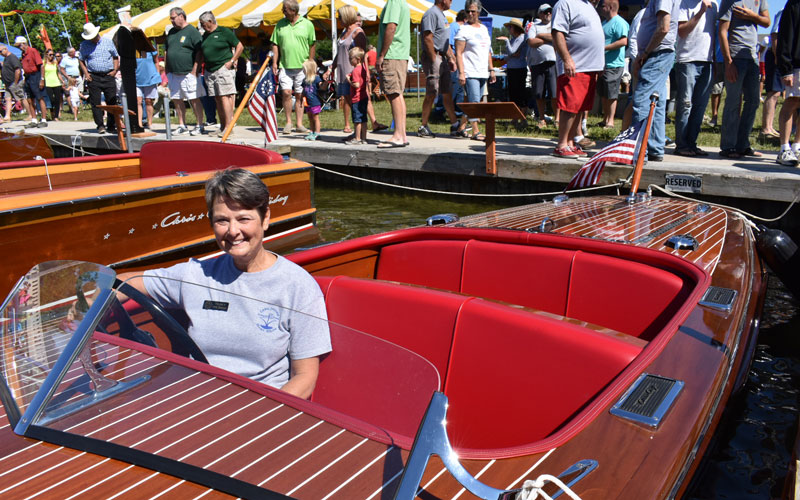 “We had approximately sixty boats, most in average user condition. There were only a few that didn’t look like they’d float for long, and only a few 95+ point boats. Everything else was soup-to-nuts, from classic mahogany to classic glass, and even two aluminum boats. The variety was impressive. More than 3000 people attended, of all ages. The succes was due to our Chapter President promoting the show as an ‘all are welcome’ show with no judging, no awards…only fun. We had classic cars of all vintages, more than a dozen non-boating vendors, a band, a junk food alley section, and a Chris-Craft mock-up made out of plywood where kids were able to sit in a chair behind the mock-up and parents could take family photos that appear as though the kids were driving the boat. It was a HUGE hit, and young families were waiting in line. We also had a great welcome/information booth to answer questions and provide material and membership information for those interested in getting involved in the hobby.”
