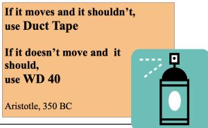 I would recommend that every boater carry a roll of Duct Tape and Plastic Electrical Tape. Both types of tape be- come extremely handy and can solve many issues, at least on a temporary basis, that will allow you to get to shore. Duct Tape can be used for almost any- thing as a temporary measure. I would also suggest that you carry a hammer in your kit and some tapered wooden plugs in a variety of sizes. The tapered wooden plugs could be used to fill small holes and plug leaks should you accidentally strike something or you begin leaking while underway from a broken